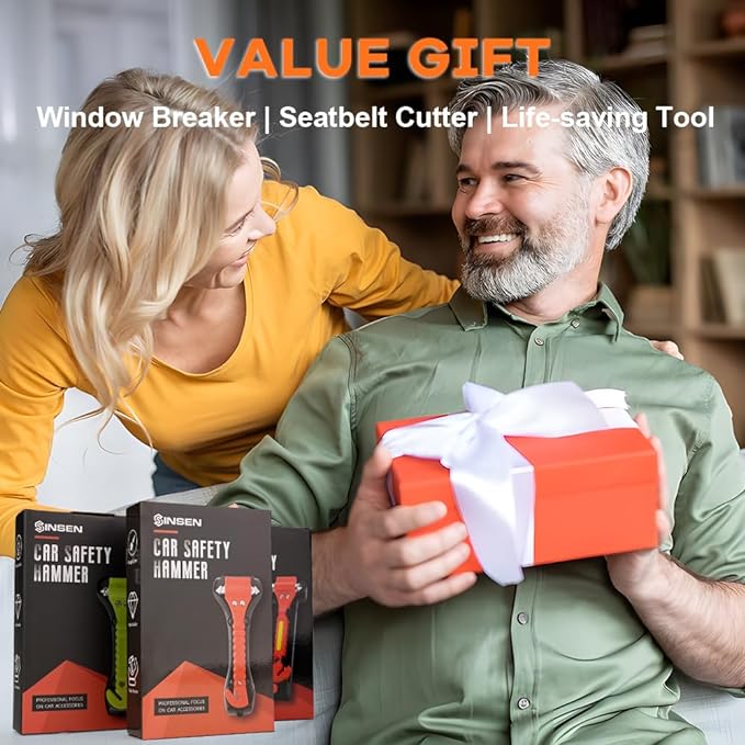 - 2-IN-1 Car Safety Tool - This life-saving multifunctional car safety hammer and seatbelt cutter is durable and reliable, allowing you to quickly exit your vehicle in an emergency situation. The bright orange color makes it easy to find in the dark or if you're in a state of panic.