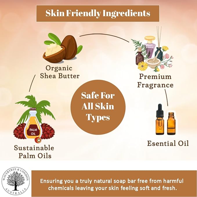- š Ingredients: Sustainable Palm oil, Palm Kernel Oil, Aqua (water), Certified Organic Shea Butter, Vegetable Glycerin, Essential Oils and/or Fragrance, Sodium Gluconate (natural sugar-based preservative), Sodium Chloride, Titanium Dioxide (food grade)