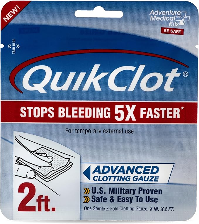 - Hemostatic Gauze Power: In any emergency survival kit, QuikClot gauze is essential, stopping bleeding fast with kaolin to support your body’s natural clotting process