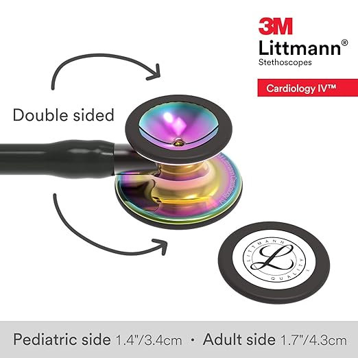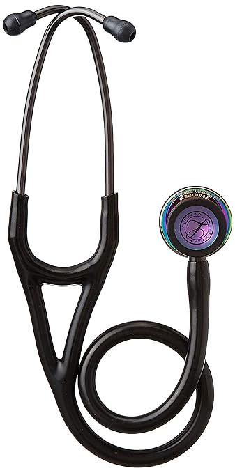 3M Littmann Cardiology IV Diagnostic Stethoscope, 6240, More Than 2X as Loud, Weighs Less, Stainless Steel High Polish Rainbow-Finish Chestpiece, 27" Black Tube, Smoke Stem, and Headset