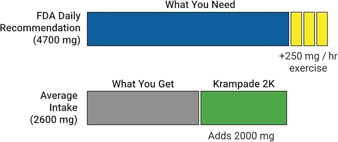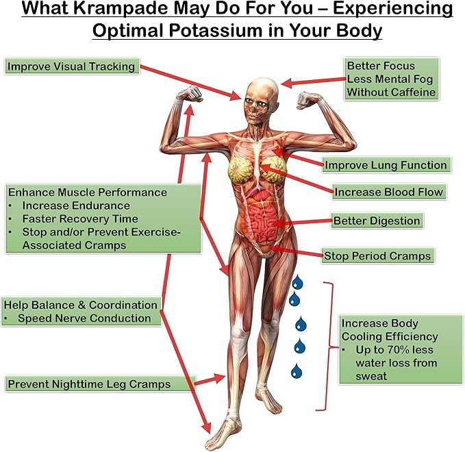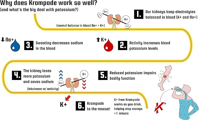- Prevent cramps before they start: Use Krampade 2K 2.0 daily and prevent painful cramps before they start. Works for exercise associated muscle cramps, nighttime leg cramps, Charlie horses, and menstrual cramps