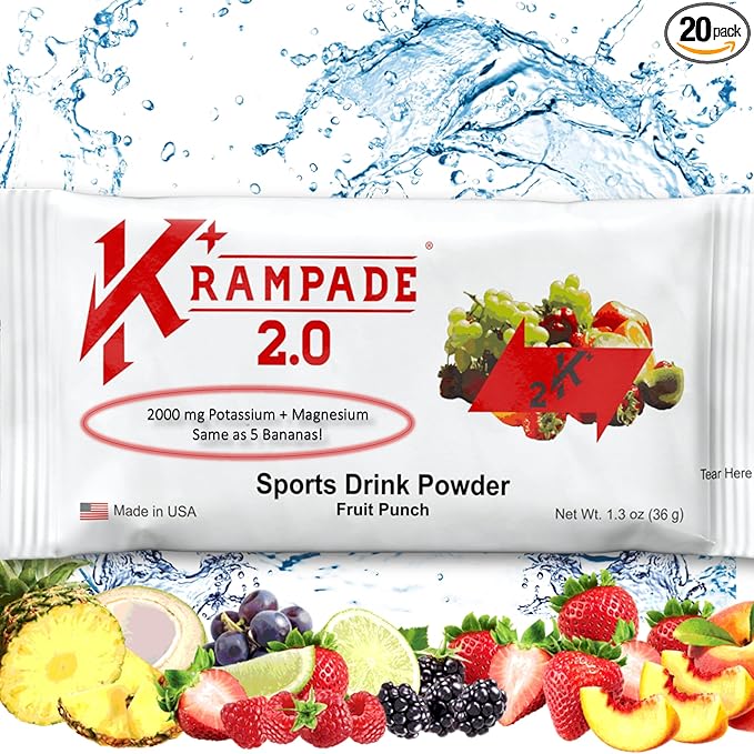 2.0 2K: 50 mg Magnesium + 2000 mg Potassium Cramp Relief Electrolyte Drink Powder: Faster Recovery, Slower Fatigue, Optimized Hydration | 20 Single-Serving Packets (Fruit Punch)