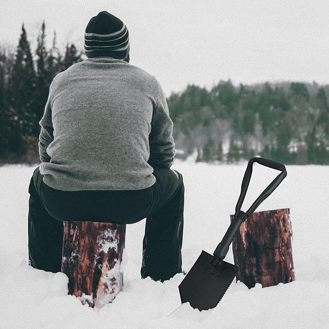 USGI Industries Military Style Shovel | Tri-Fold Entrenching Tool with Serrated Edge | Lightweight, Foldable, Compact, Multi-Use Perfect for Camping, Survival, Trenching (E-Tool)