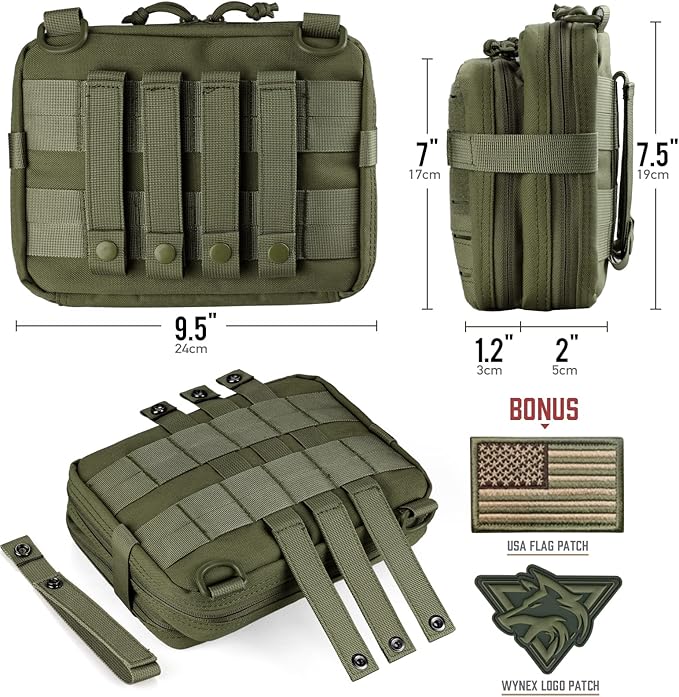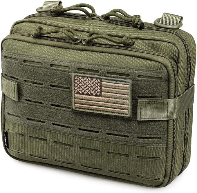 WYNEX Tactical Molle Admin Pouch of Laser Cut Design, Utility Pouches Molle Attachment Military Medical EMT Organizer with Map Pocket EDC EMT Pack IFAK Tool Holder Universal U.S.A Patch Included