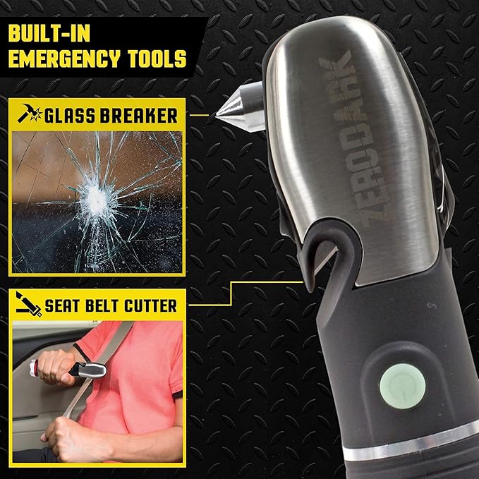 ZeroDark Pocket Knife Flashlight Multitool Emergency Car Kit with Car Window Breaker Seatbelt Cutter - 10-in-1 Car Escape Tool with Swiss Army Knife, Batteries Included