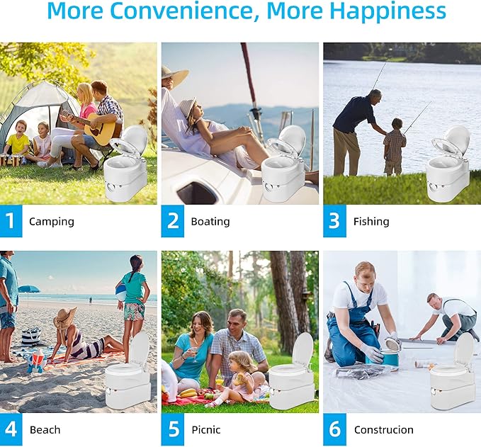 - MULTI-PURPOSE USE: The portable potty is a necessary for camping or travelling without taking up too much room, it can be used for outdoor and camping activities, car, RVs, boats, mobile home use, trailer, marine, van, construction site places with inadequate sanitary facilities for field operations; Also especially suitable for pregnant women, the elderly, patients, etc