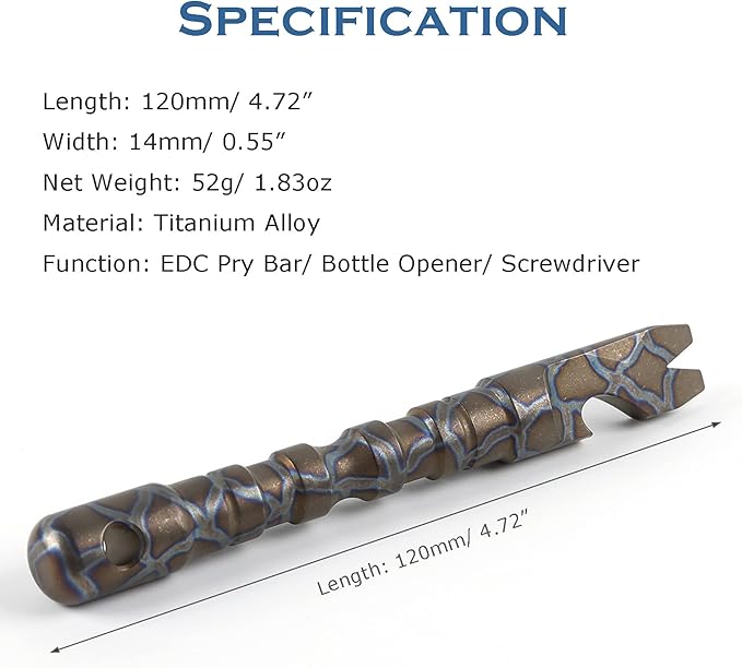 - Anti slip design for convenient using. A good EDC tool for outdoor camping hiking, a great addition to you EDC gear. Made of high quality titanium alloy material. High strength and rust-resistant. A multi EDC tool for everyday carry to use, not suitable for large heavy work.