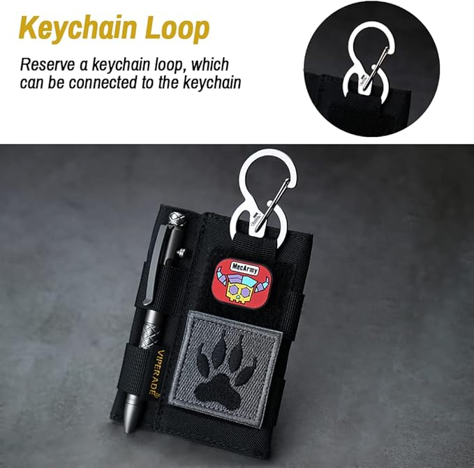 - 【Easy to Use】MOLLE plug-in design can hold tools with pocket clips tightly. Multiple ways to wear. The reserved keychain loop can be attached to a keychain to hang on a belt, on a backpack, or around the neck through a paracord.