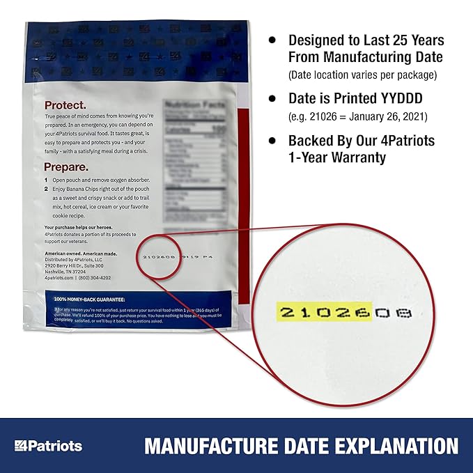 - “DISASTER-RESISTANT” PACKAGING: Triple-layer Mylar pouches help protect your food. This premium packaging works as a barrier to help protect against things that can harm your food: air, light and moisture. Then we use a high-tech, high-capacity oxygen absorber to suck OUT any excess air. Which seals IN your food’s shelf life.