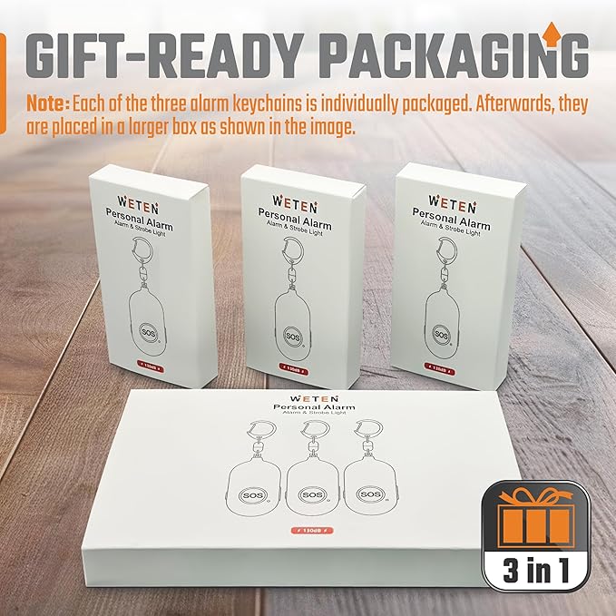 - Safety First – Increase your safety with WETEN’s 130db personal alarm siren. It’s a small but loud and bright portable self-protection device that startles attackers and alerts others to emergency situations.
