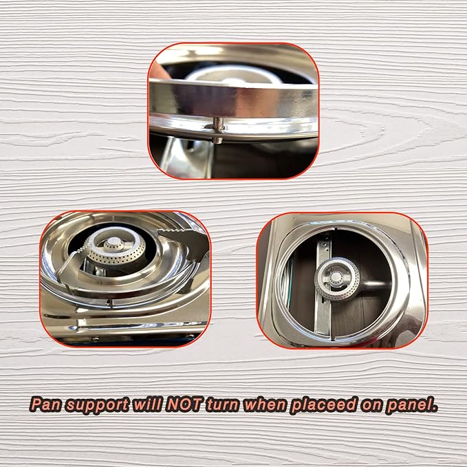 - 🔥 Stable Pan Support: Features anti-slip fixed pot stands that stay firmly in place during cooking—no wobbling or shifting, ensuring safe and stable operation