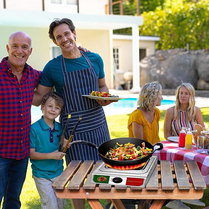 - 🔥 10,000 BTU High Heat Output Provides steady and efficient heat for outdoor cooking, boiling, and frying Salida de calor de 10,000 BTU para cocinar, hervir o freír de forma eficiente al aire libre