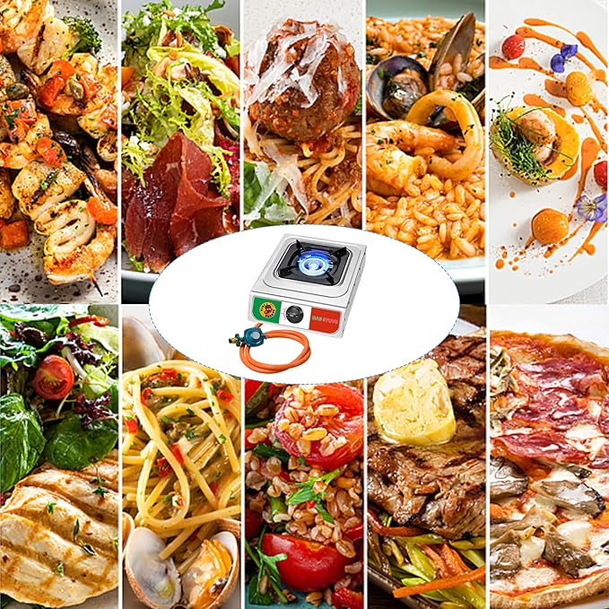 Vivicreate 10000 BTU Single Burner Propane Gas Stove Outdoor Camping Cooker Portable Stainless Steel Cooktop with Hose for BBQ Frying Boiling High BTU Estufa de Gas Portátil Fogón de Gas