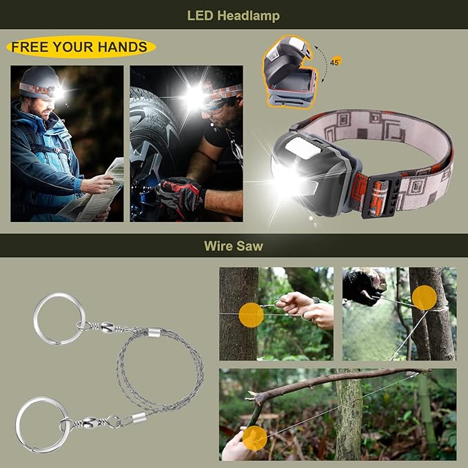 XUANLAN Emergency Survival Kit, Outdoor Survival Gear Tool with Survival Bracelet, Fire Starter, Whistle, Wood Cutter, Water Bottle Clip, Pen (29 in 1)
