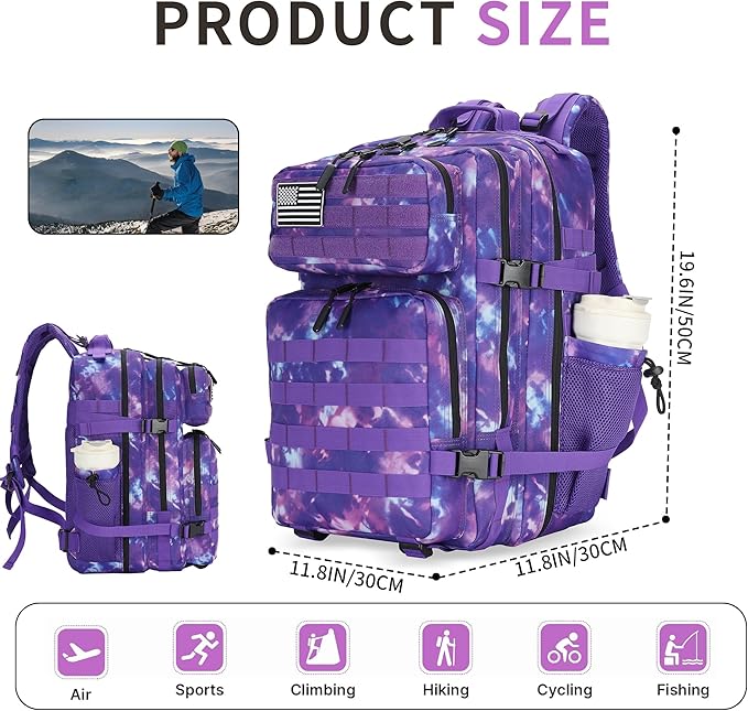 - 【Multifunctional BackPack】 Comfortable Military Tactical Backpack is suitable . It is recommended for daily use/office/shopping/camping/hiking/trip/travelling.