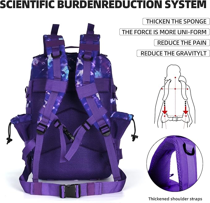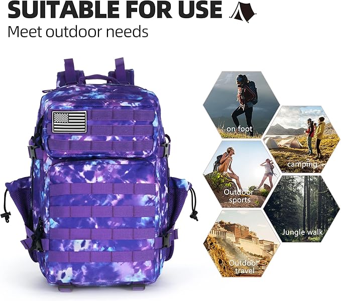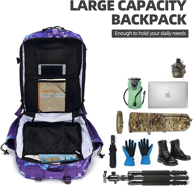 45L Tactical Assault Backpack 3 day assault pack with Molle Waterproof backpack Rucksack for Tactical Backpacks (Purple Camo)