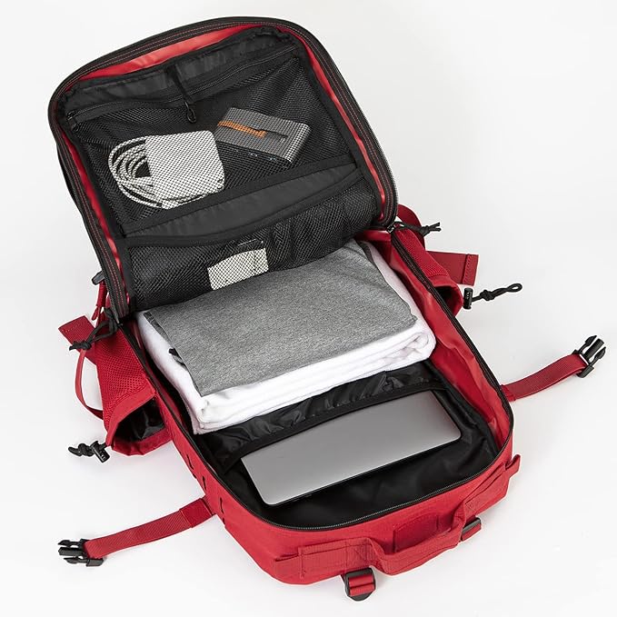 - 【COMFORT & FUNCTION】This sports fitness daypack double stitched, padded shoulder straps and back area with mesh backing for comfort, ventilation, and strength during travel. high-quality brand two-way zipper, all compartments have two-way openings for easy access. Easy adjustable waist straps to keep the waist strap from sliding loose through the buckles. Hundreds of uses including as 3 day assault pack, Bug out bag, survival backpack, army backpack, hunting backpack, trekking backpack