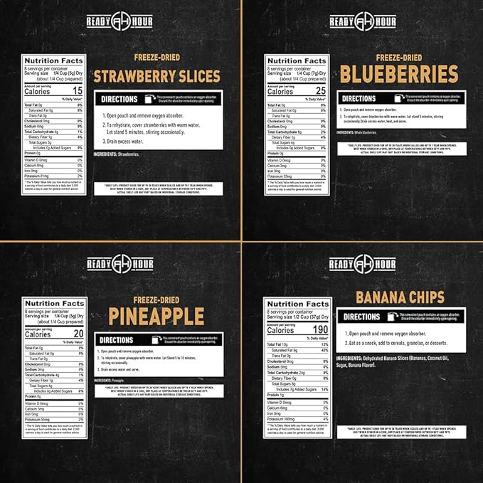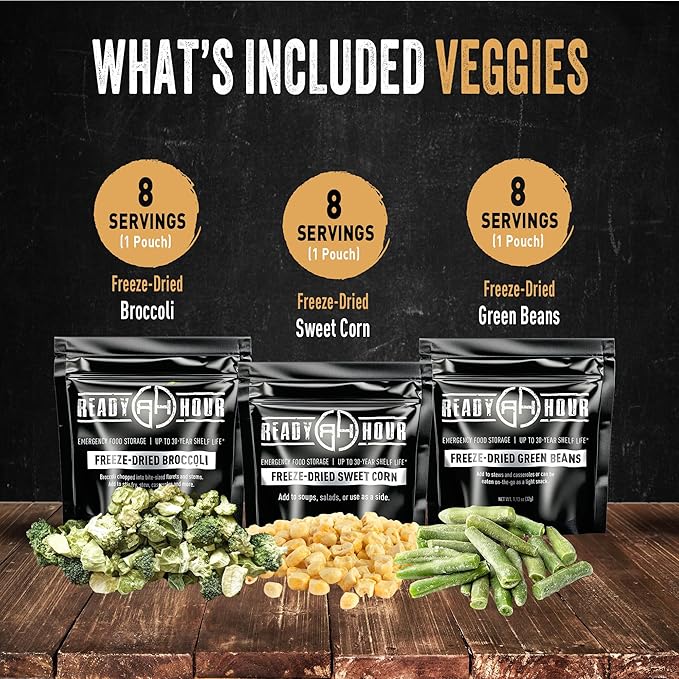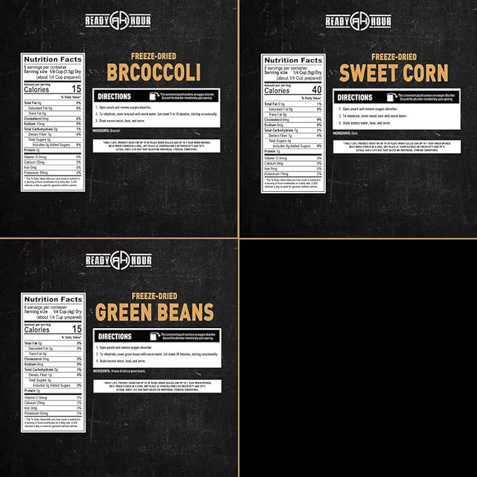 - TASTES GREAT: Ready Hour Freeze dried fruits and veggies are made for emergencies but tasty enough for everyday use.