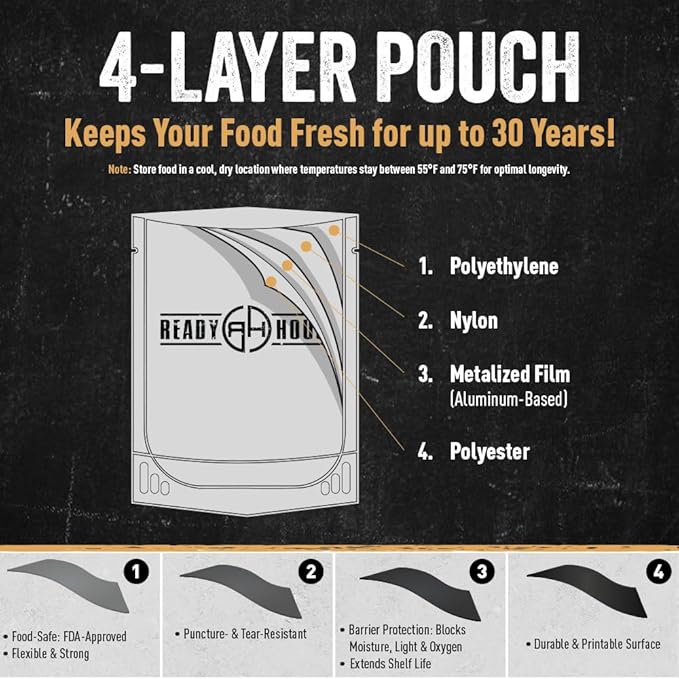 - 30 YEAR SHELF LIFE: Includes 56 total servings. Can be stored anywhere that offers a cool and dry environment.