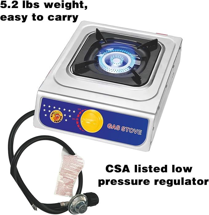 Vivicreate Propane Gas Stove 10000 BTU Single Burner Stainless Steel Cooktop Portable Outdoor Cooking with Regulator for Camping BBQ Patio Picnic