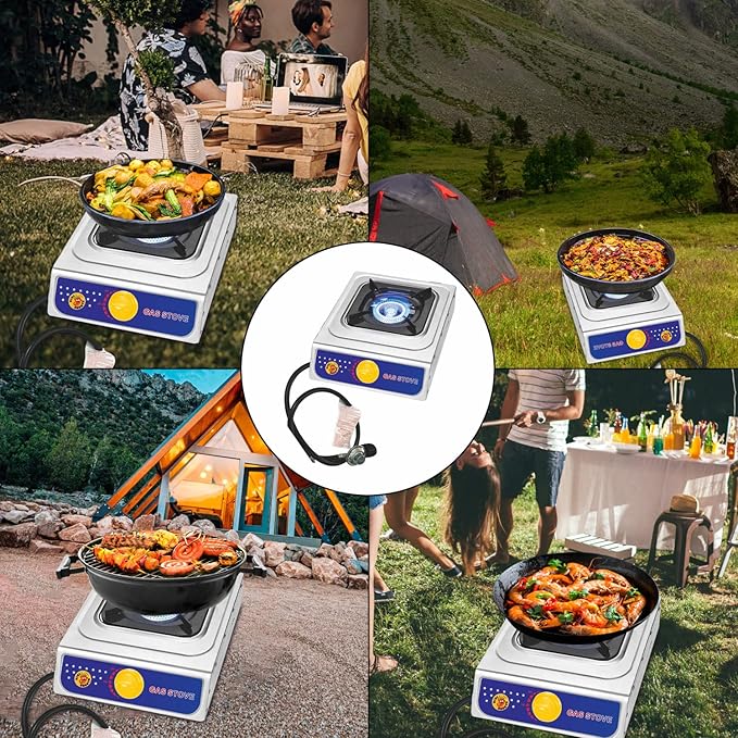 - 🔥 10,000 BTU High Heat Output: Delivers strong, consistent flame for fast and efficient outdoor cooking—ideal for boiling, frying, or stir-frying