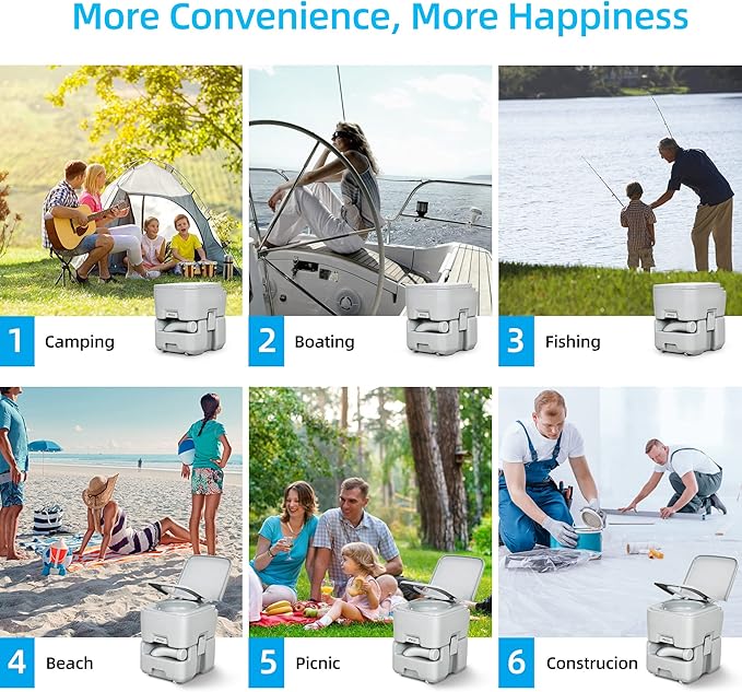 - Large capacity: 3.2 gal (12L) freshwater holding tank and 5.3 gal (20L) sewage holding tank allow a crowd to use for several days without needing frequent emptying. The portable toilet saves your time