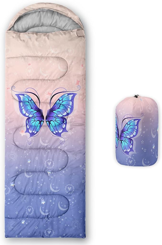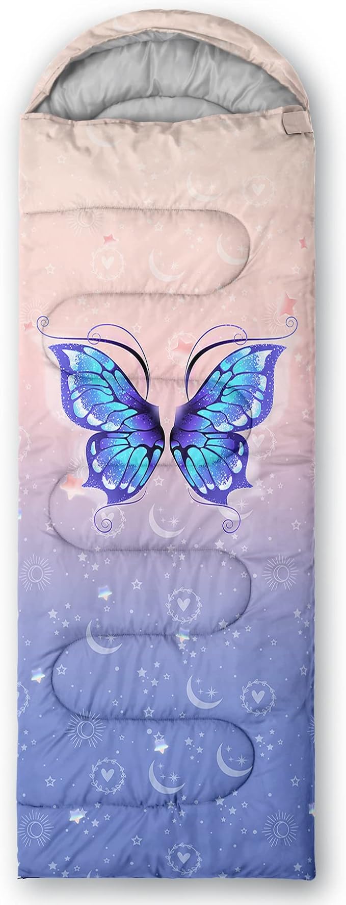 - A THOUGHT OUT DESIGN: Drawstring allows you to tighten hood and keep you warm. The idea of having a zipper at the foot to allow more warm or cool air to enter or exit the bag in different times of the season.Our Blue Butterfly sleeping bags are designed to provide much needed rest after a full day of outdoor activities.