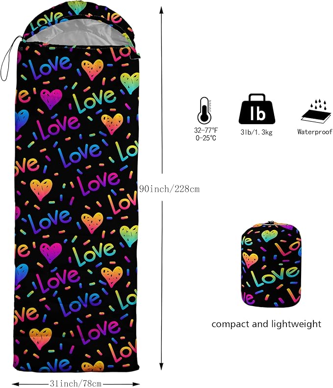 - A THOUGHT OUT DESIGN: Drawstring allows you to tighten hood and keep you warm. The idea of having a zipper at the foot to allow more warm or cool air to enter or exit the bag in different times of the season.Our Love Heart sleeping bags are designed to provide much needed rest after a full day of outdoor activities.