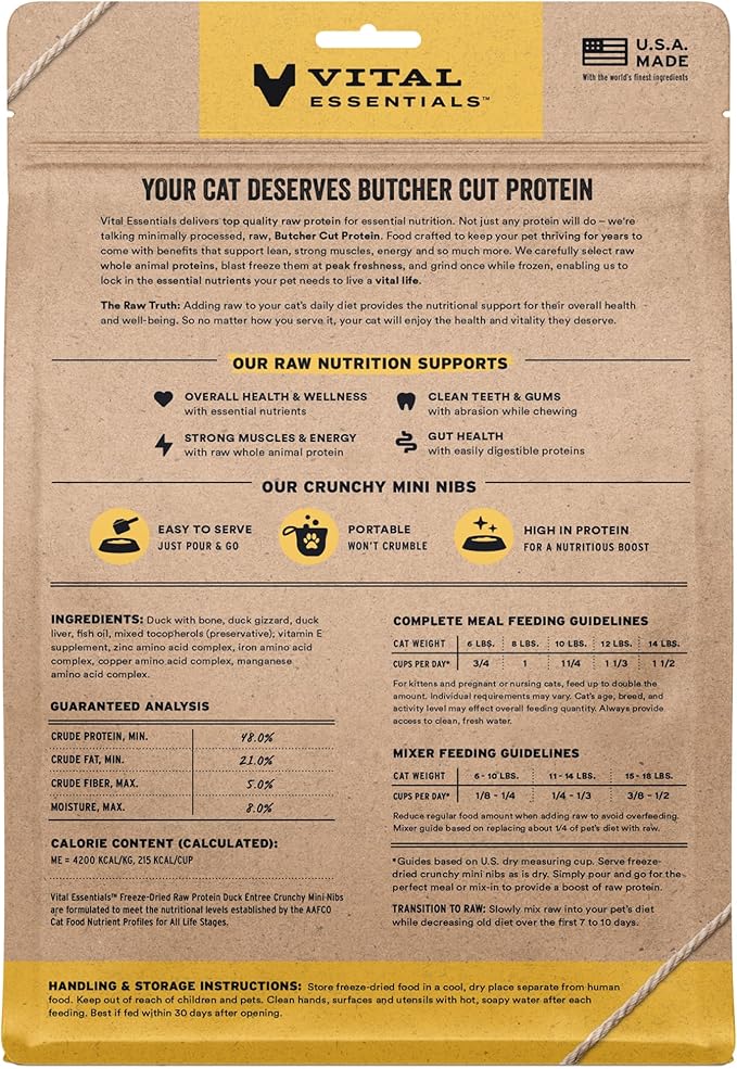 Vital Essentials Freeze-Dried Raw Duck Meal or Mixer Cat Food Crunchy Nibs, 12 oz