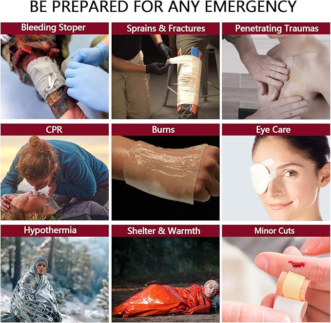 - First Aid Suppiles for Comprehensive Usability:This is a Premium first aid kit with advanced accessories upgraded by a professional team. Helps with emergency needs outdoors, home, or in the car, such as camping, hiking, or during hurricanes and tornadoes