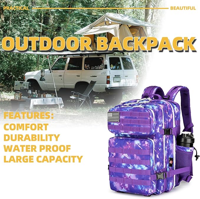 - This molle backpack is the best choice for your outdoor adventure, can be used to travel, hiking, camping, fishing, hunting. It also can be used as an military backpack, motorcycle backpack, computer backpack, laptop backpack, sport backpack, gym backpack, weekend backpack, daypack backpack for daily use.【ONE YEAR QUALITY SUPPORT. 】