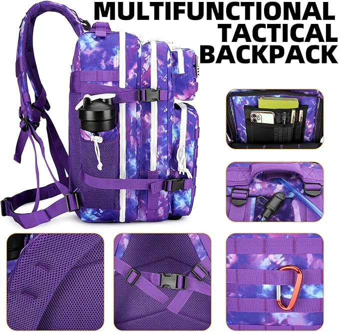 25L Tactical Backpack Military Tactical Backpack for Men and Women Small Assault Pack Outdoor Travel Hiking Camping Rucksack with Molle Webbing (Purple Camo)
