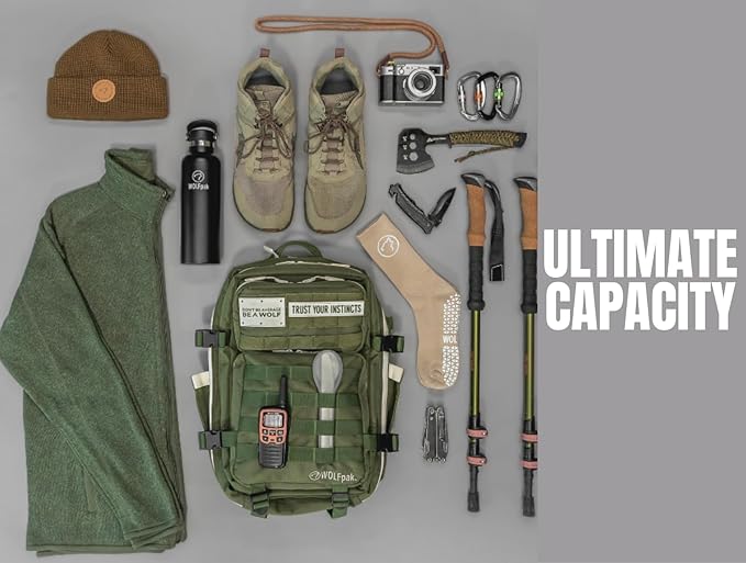 - Express Your Personality: Customize this military tactical backpack with removable patches on the built-in Velcro space. Two patches with the messages "Trust Your Instincts" and "Be A Wolf" are included.