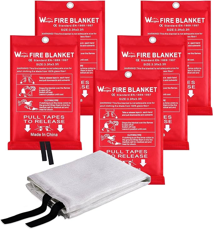 Wucgea Fire Blanket for Home and Kitchen - 5 Pack Fiberglass Reusable Fire Blankets Suppression Emergency for School Fireplace Grill Car Office Garage Welding Warehouse Safety 3.3ft x 3.3ft