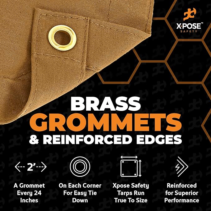 Xpose Safety Canvas Tarp - 10oz Tan Canvas Tarps Heavy Duty Water Resistant with Brass Grommets- Multipurpose Outdoor Tarpaulin for Camping, Canopy, Trailer, Equipment Cover 10' x 16'