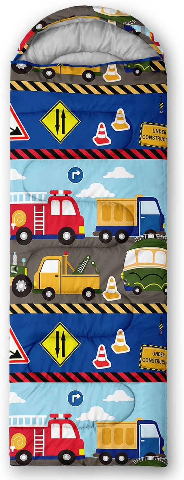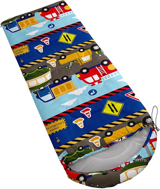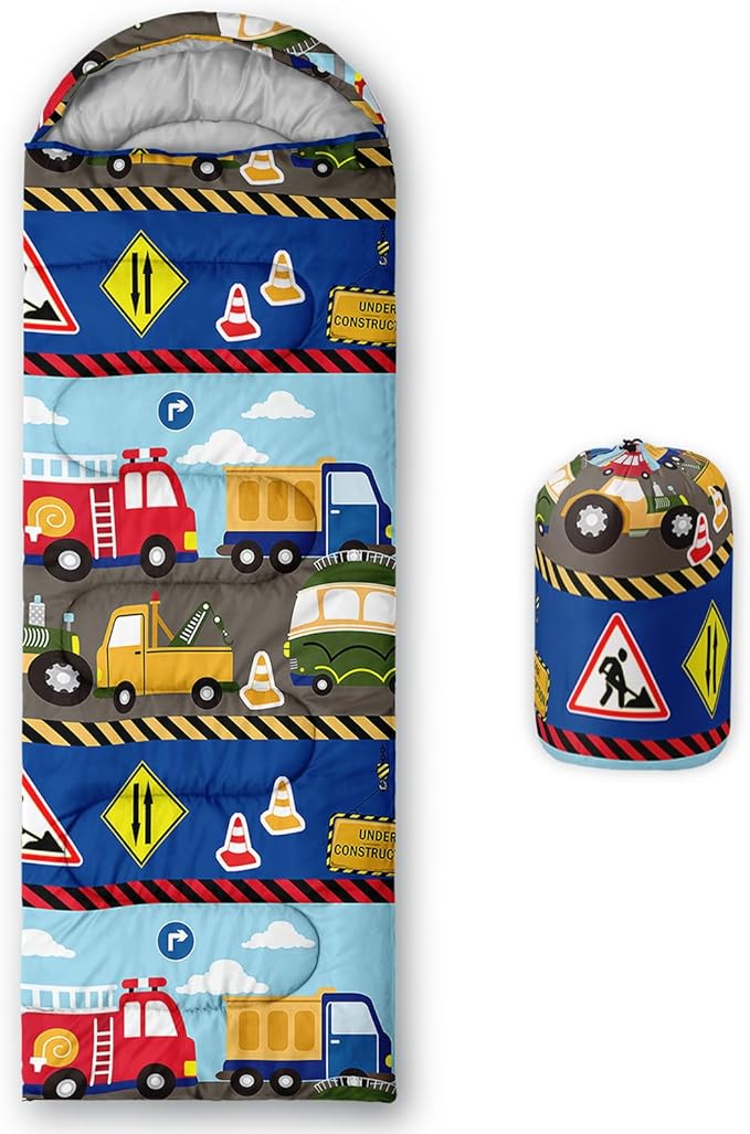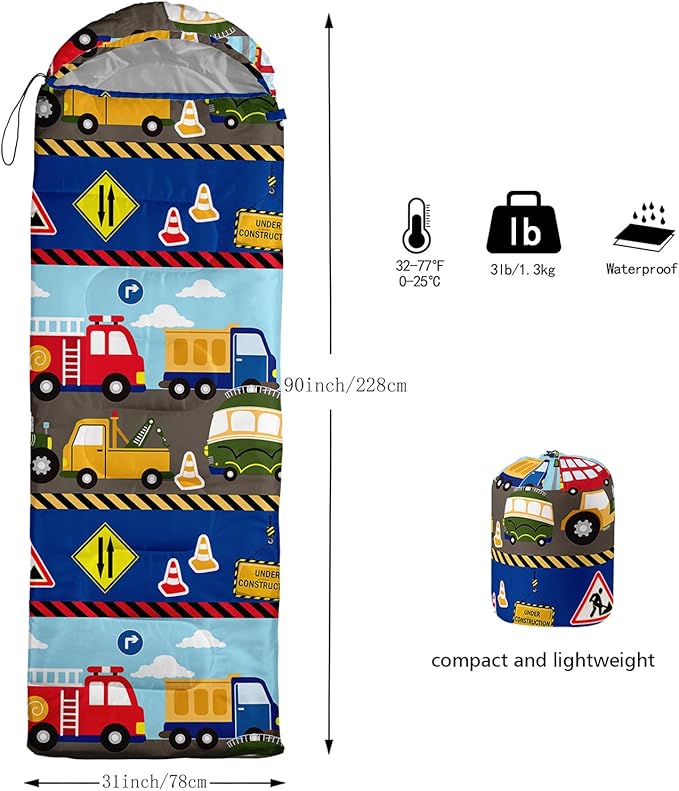 - 【Fits For 3 Seasons】: Size - 31 by 90 inches (W x D). Our Construction Zone sleeping bag can be used in 3 seasons with a design temperature of 32℉-77℉(0℃-25℃). These Traffic Vehicles bags also have a weather resistant waterproof design to keep you warm and prevent you from any dampness.