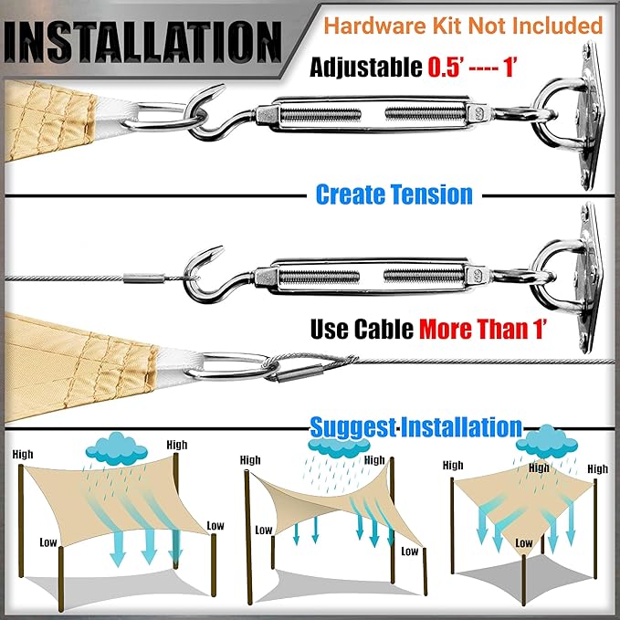 - 【UV BLOCKAGE】: Blocks up to 90% of harmful UV, economical canopy alternative for your patio, carport, yards, can be taken down or pulled up in 5 min.