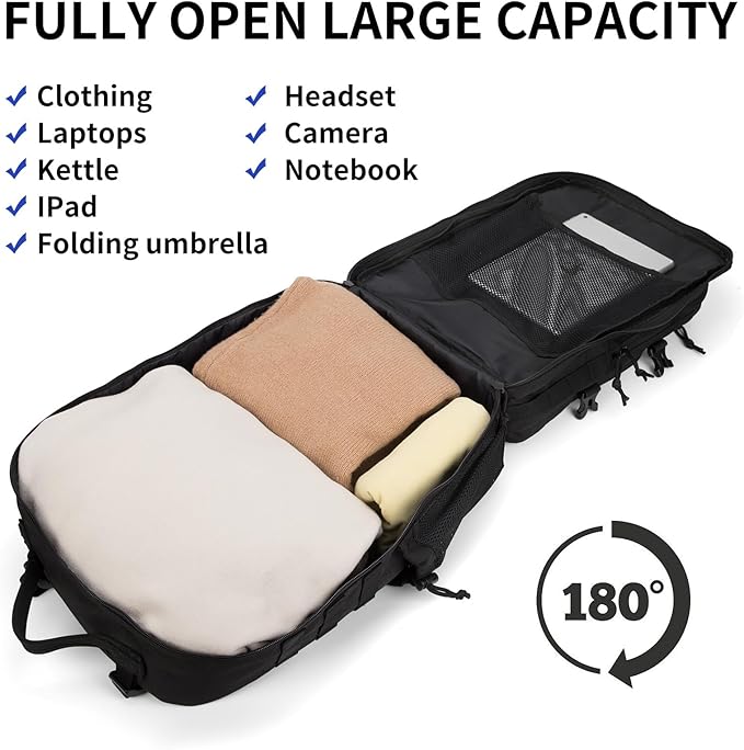 - Premium Waterproof and Tear-Resistant Fabric: Crafted from durable 900D waterproof material, this tactical backpack offers superior protection against water and moisture, ensuring your belongings stay dry in unpredictable weather. The reinforced bottom with double-layer PU coating enhances its tear resistance and wear durability, making it the perfect companion for rugged outdoor adventures or demanding daily use