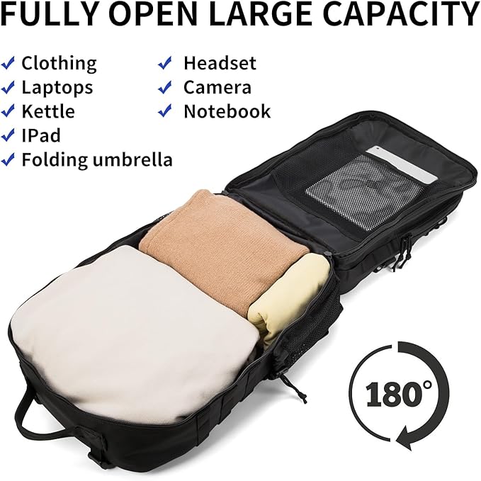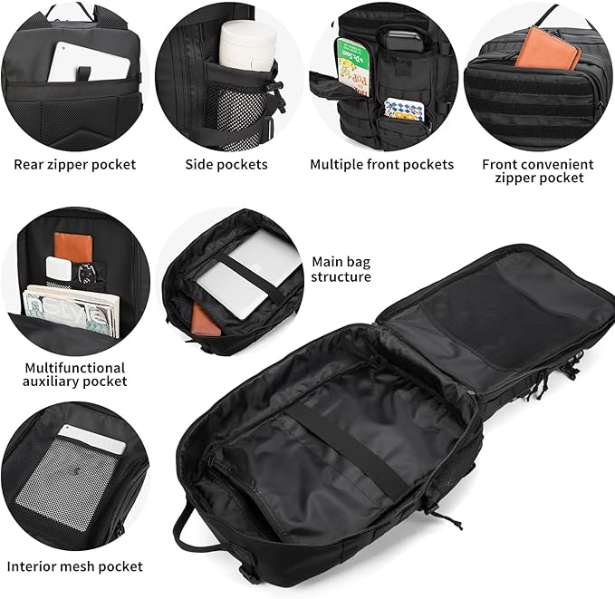 - Premium Waterproof and Tear-Resistant Fabric: Crafted from durable 900D waterproof material, this tactical backpack offers superior protection against water and moisture, ensuring your belongings stay dry in unpredictable weather. The reinforced bottom with double-layer PU coating enhances its tear resistance and wear durability, making it the perfect companion for rugged outdoor adventures or demanding daily use