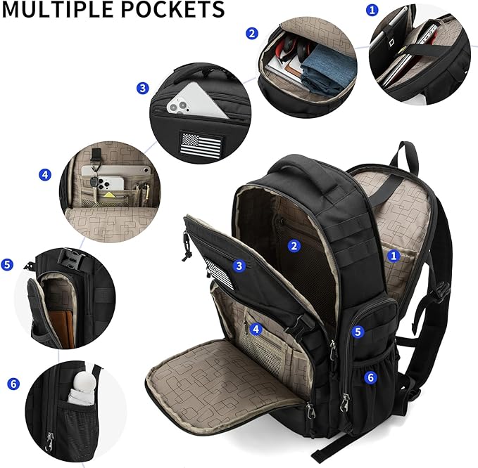 - Plenty of storage space and pockets: This tactical backpack is the best complement to your adventure. It has many compartments that provide excellent storage capacity and organization without slowing you down.