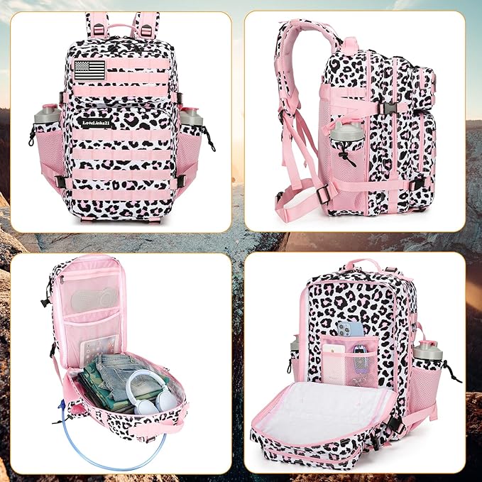 25L Tactical Backpack for Men Women Military Backpack Army Assault Pack Molle Backpack Small Bug Out Bag Travel Rucksack Daypack (Pink Leopard)