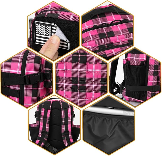 - 【THE SPACE YOU NEED】This Military Tactical backpack size appro:15.7inch x 9.8inch x 9.8inch / 40cm x 25cm x 25cm dimensions and appropriately sized 25L capacity, this pack has room for all of your essential gear. Large multi-layer interior storage compartments can accommodate a lot of outdoor equipment, and also meet your daily travel needs. large area of Velcro, make the backpack different with other backpacks, you can paste any patch you like. one US flag patch for gift(can be removed)