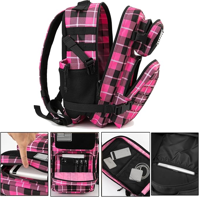 - 【COMFORT & FUNCTION】This sports fitness daypack double stitched, padded shoulder straps and back area with mesh backing for comfort, ventilation, and strength during travel. high-quality brand zipper, main compartments have two-way openings for easy access. Easily adjustable chest strap reduces weight-bearing pressure. Hundreds of uses including as Bug out bag, survival backpack, army backpack, hunting backpack, hiking backpack, work bag