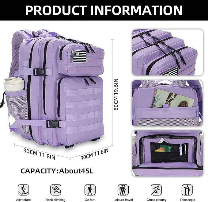 - SUPERIOR DURABILITY- Each backpack measures 22 x 10 x 14 inches, 45 Liter Tactical Assault Backpack is made of high quality 900D Oxford fabric, super durable for daily use or outdoor adventure.