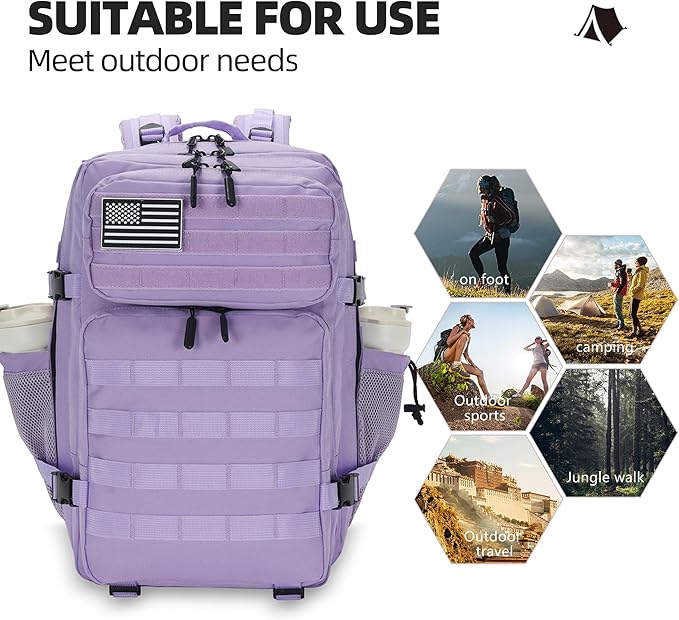 45L Tactical Assault Backpack 3 Day Assault Pack with MOLLE Waterproof Rucksack for Tactical Backpacks (Light Purple)