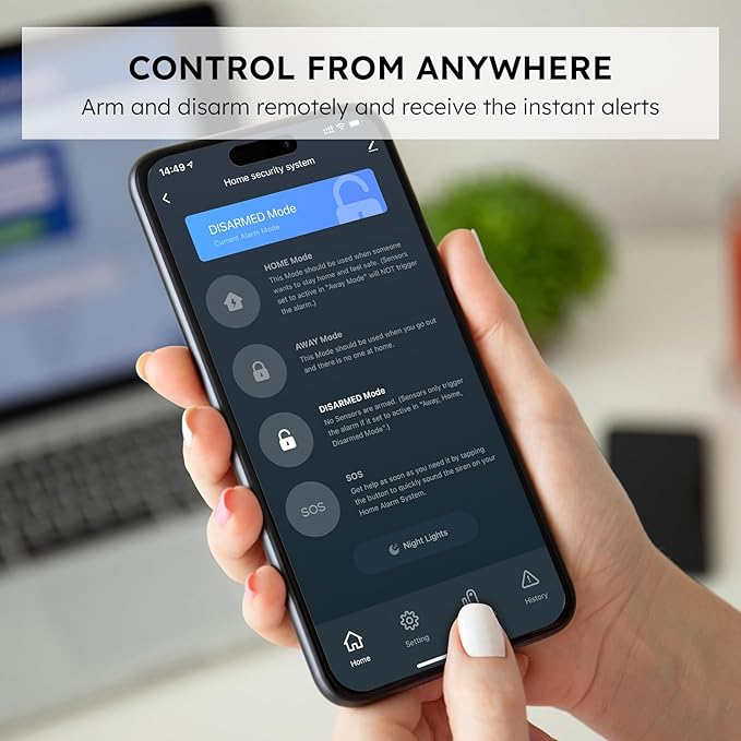 - ✅Remote Control:Convenient App remote control allows you to easily arm, disarm, and monitor your home security system from anywhere.Set timers and schedules to automate your home security system, providing peace of mind even when you're away from home