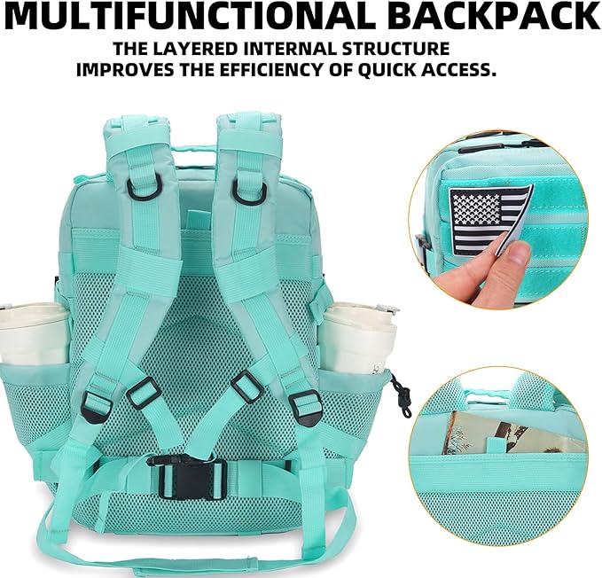 25L Tactical Backpack for Men Women Military Backpack Army Assault Pack Molle Backpack Small Bug Out Bag Travel Rucksack Daypack (Mint Green)