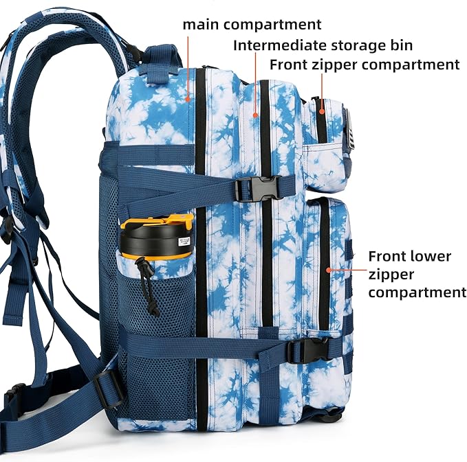 - MULTIFUNCTIONAL COMPARTMENT- With a spacious main compartment, multiple front and side pockets, and a separate laptop sleeve, this tactical backpack can hold a wide range of gear, from clothing to electronics, for a three-day assault mission or other outdoor activities.