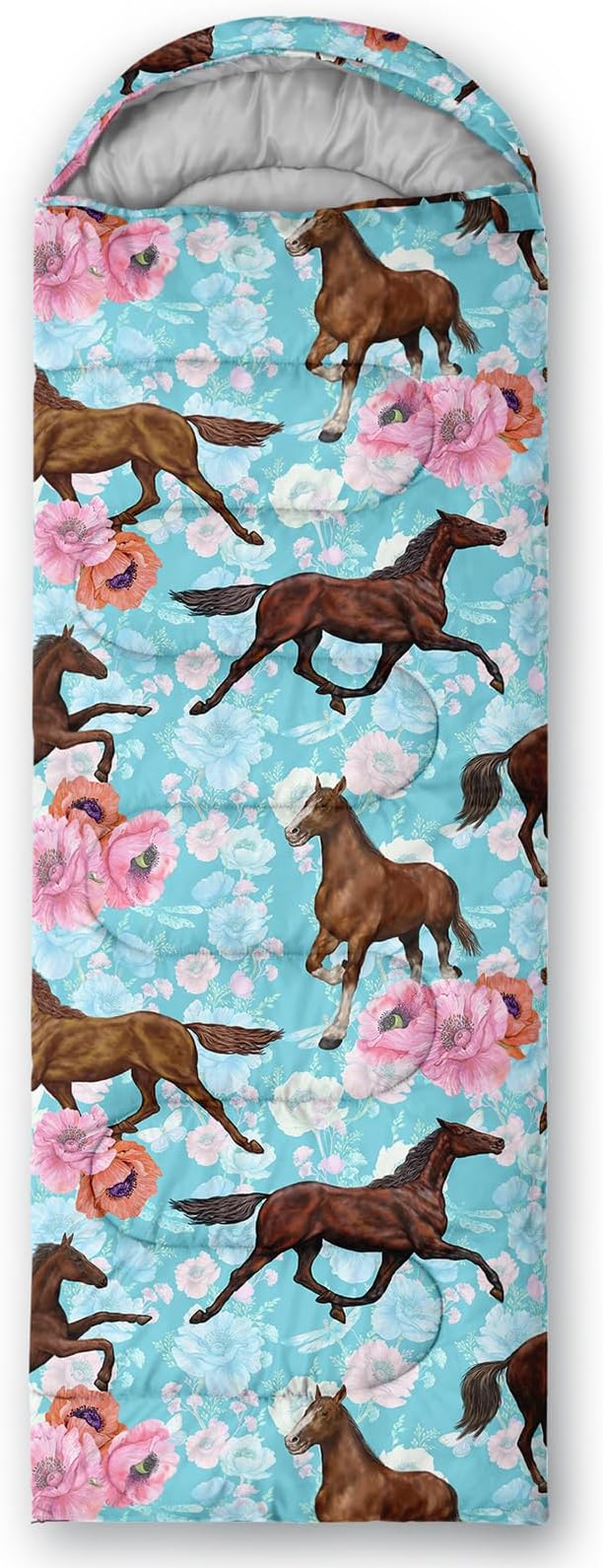 - 【Fits For 3 Seasons】: Size - 31 by 90 inches (W x D). Our Horses sleeping bag can be used in 3 seasons with a design temperature of 32℉-77℉(0℃-25℃). These Sleeping bags also have a weather resistant waterproof design to keep you warm and prevent you from any dampness.