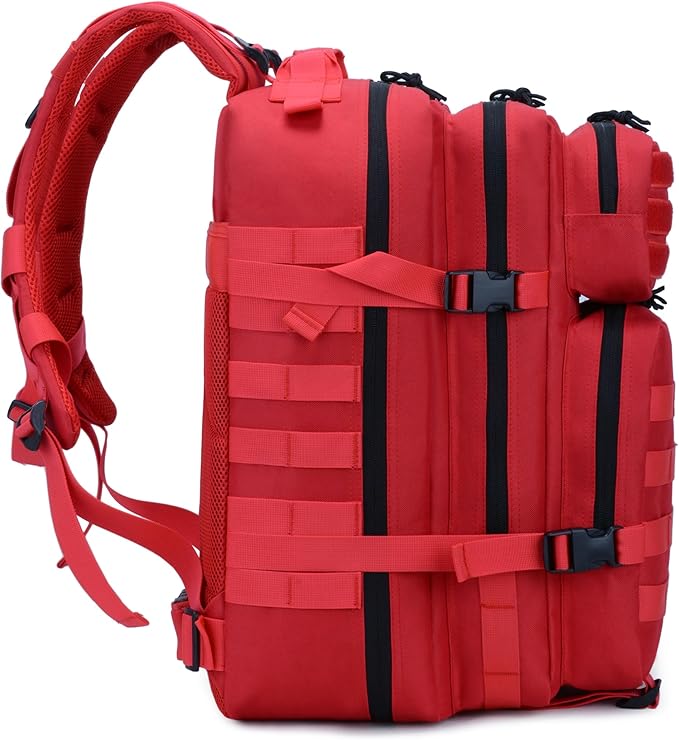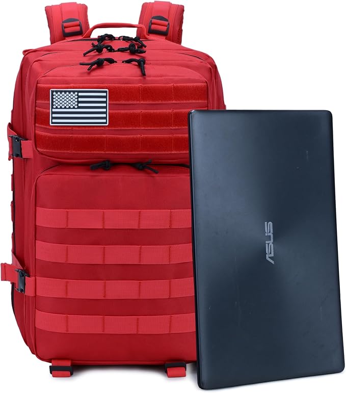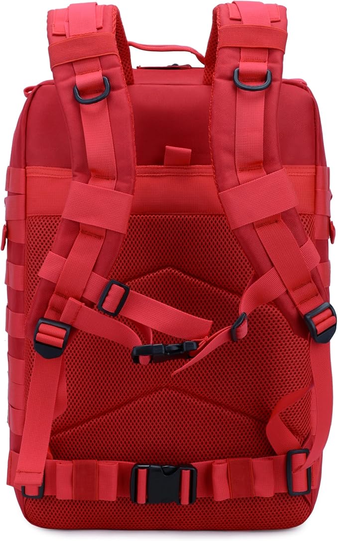 - Large Capacity & Organized Storage - 45l military backpack red with 180° clamshell opening,17-inch padded laptop sleeve and 5 compartments (2 front pockets,2 main compartments,mesh pocket). Perfect for 3-day trips,gym gear or emergency supplies,size 19.7in x 11.8in x 11.8in